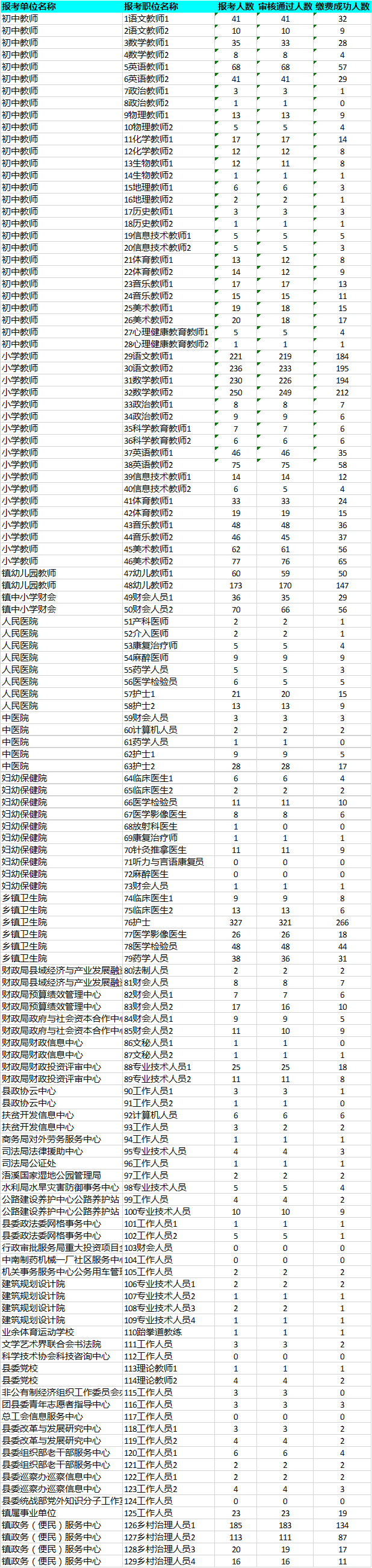 祁阳县2020年公开招聘事业单位工作人员报考情况统计如下(截止到7月3日18时)