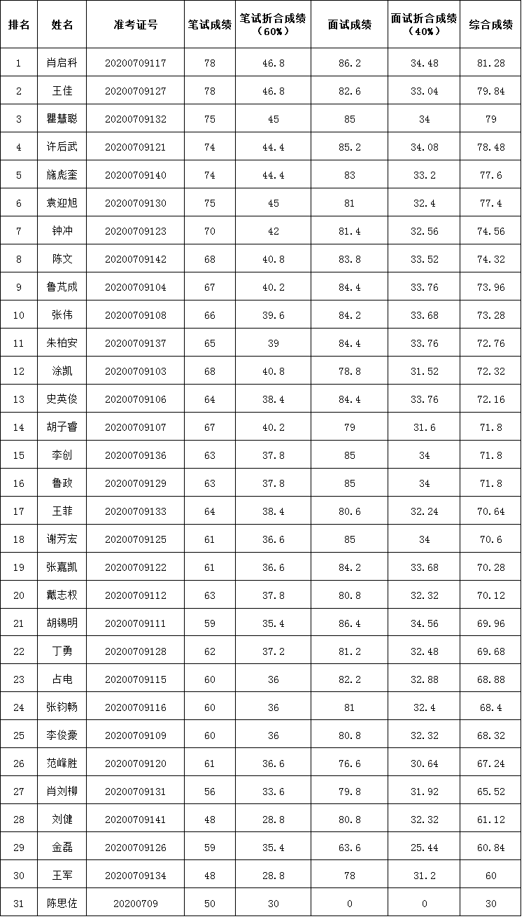 汉寿县公安局交警大队公开招聘辅警综合成绩公示