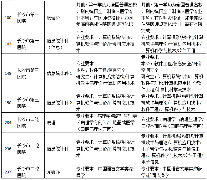 其他要求及时间安排仍以《2020年长沙市卫生健康委员会直属事业单位公开招聘工作人员简章》为准。