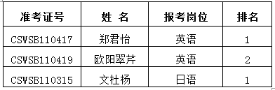 2019年中共长沙市委外事工作委员会办公室所属事业单位公开招聘工作人员,经报名、资格初审、笔试、资格复审、考核、体检、考察等程序,按照《招聘简章》相关规定,现将拟录取人员名单公示如下,公示期为7个工作日。