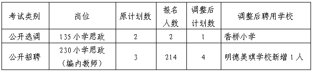 长沙市望城区2021年第二批公开选调和招聘教师报名工作已全部完成,根据《长沙市望城区2021年第二批公开选调教师简章》,骨干教师岗位计划数与报名人数应达到1:2的比例,在编在岗教师岗位计划数与报名人数应达到1:3的比例,如低于此比例,则将岗位计划数调剂至望城区第二批公开招聘教师相应岗位。现将相关岗位计划数及聘用学校调整如下: