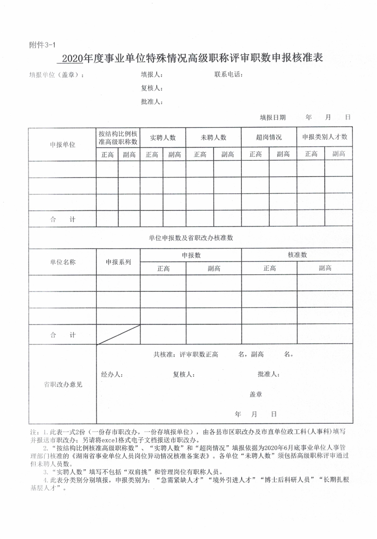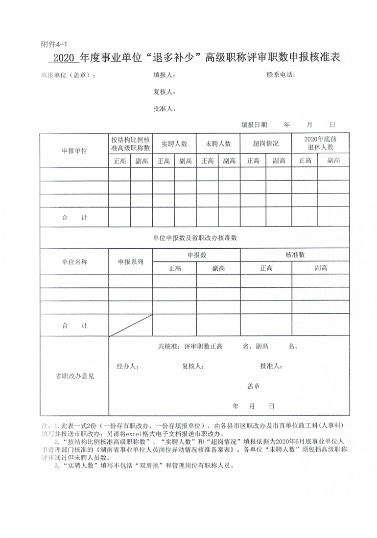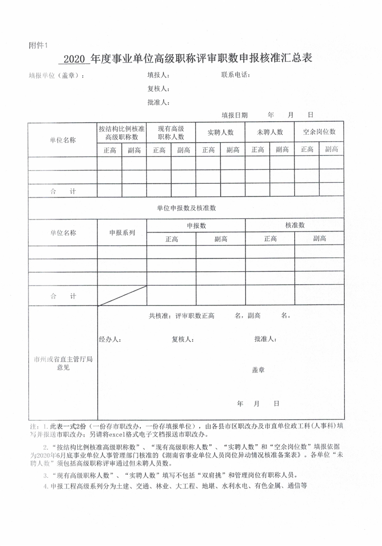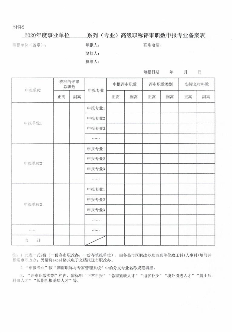 申报2020年度事业单位高级职称评审职数相关表格(附件1-5).xls