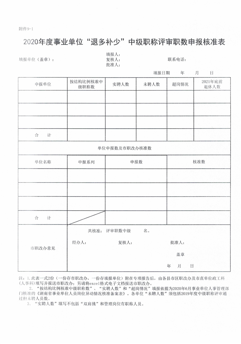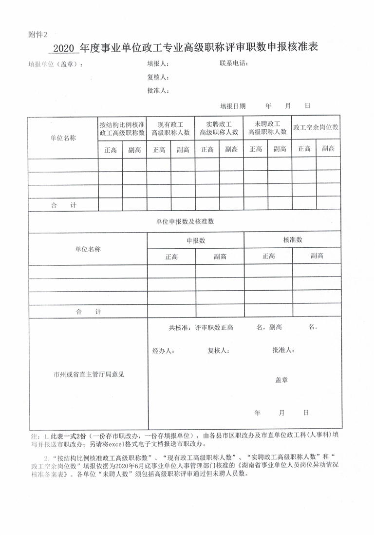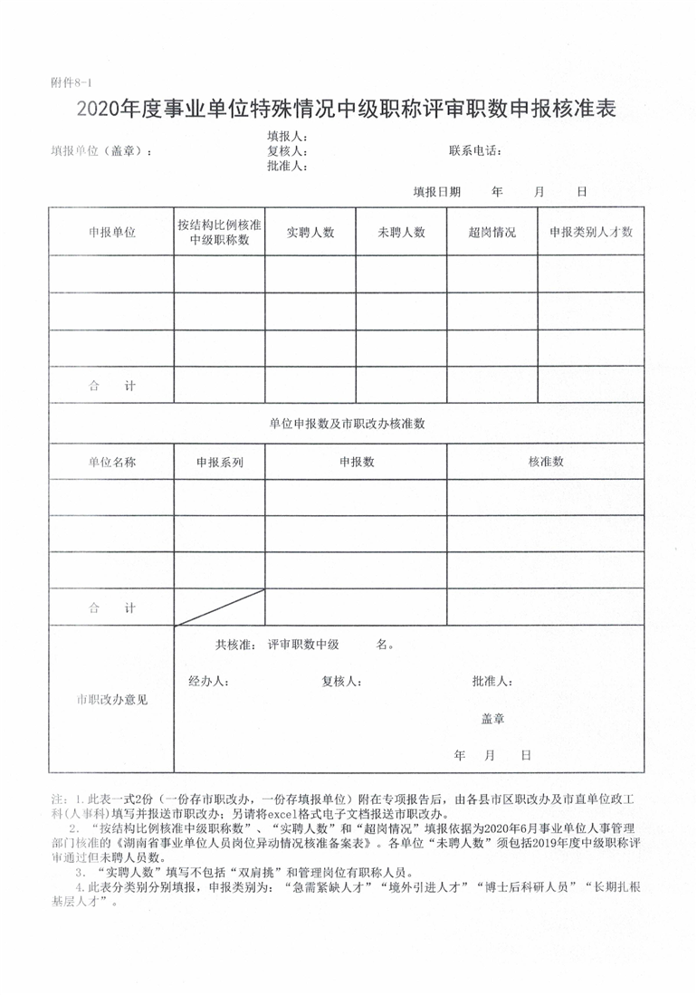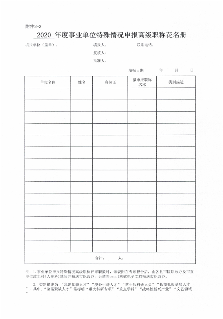 申报2020年度事业单位高级职称评审职数相关表格(附件1-5).xls