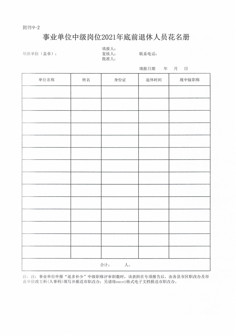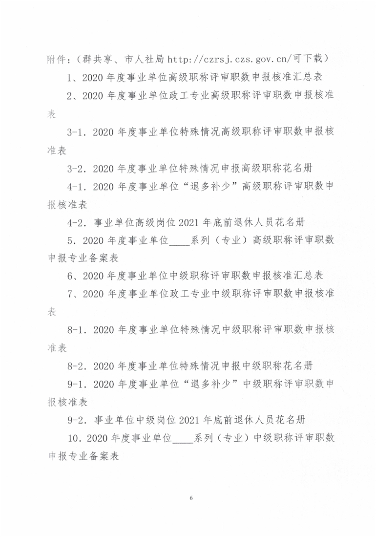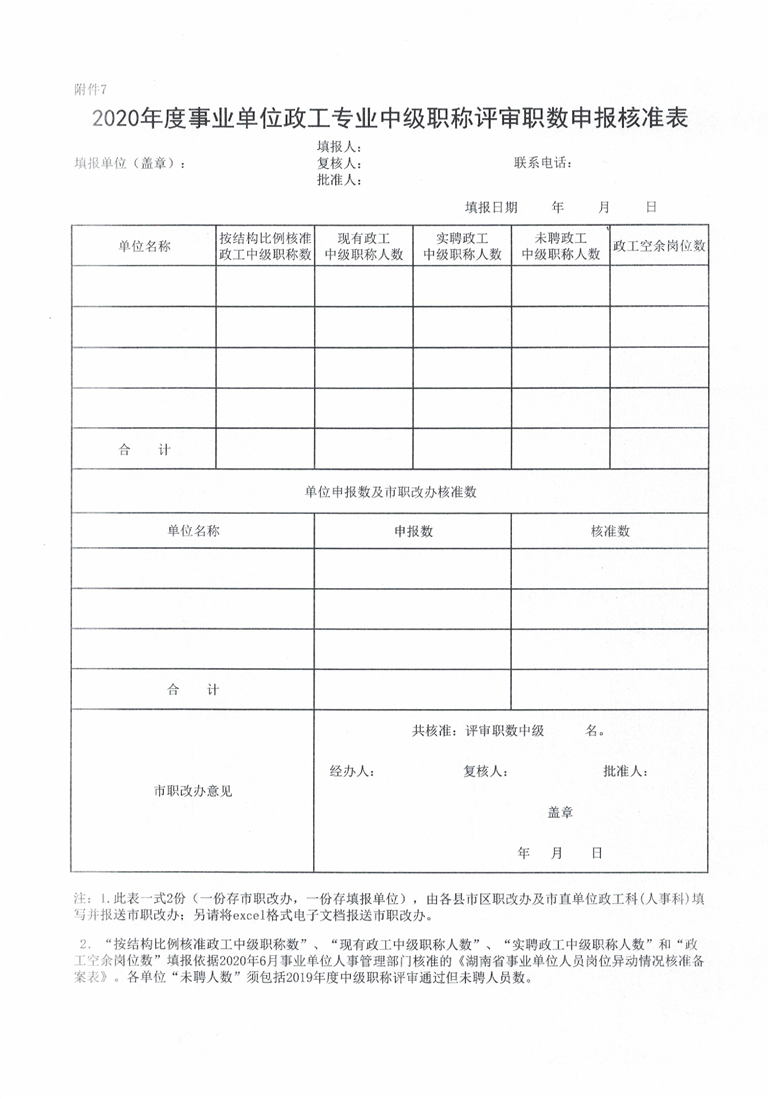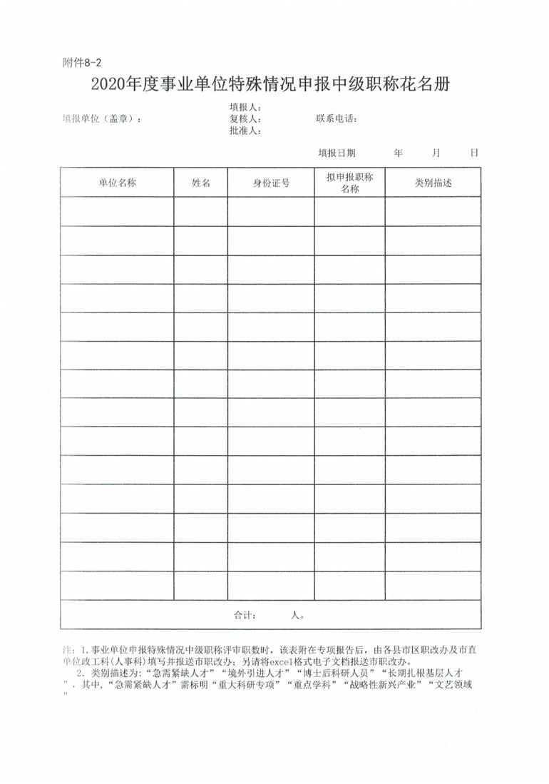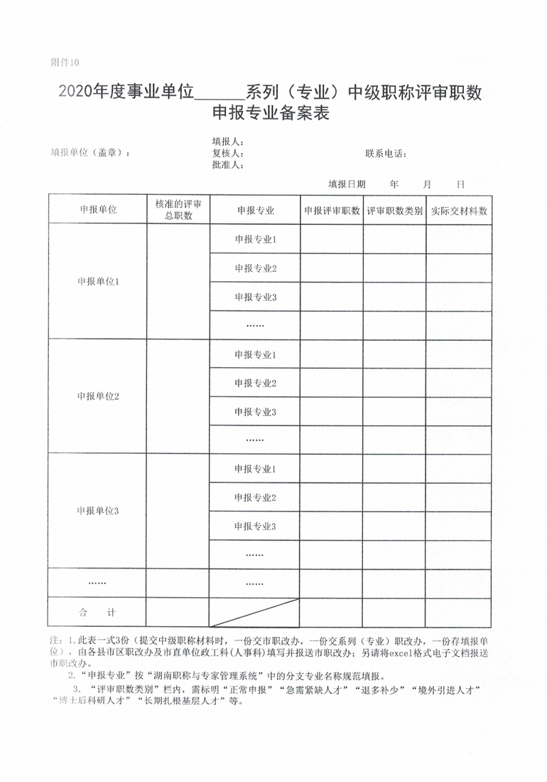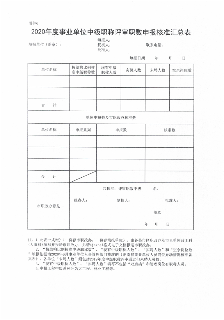 申报2020年度事业单位中级职称评审职数相关表格(附件6-10).xls