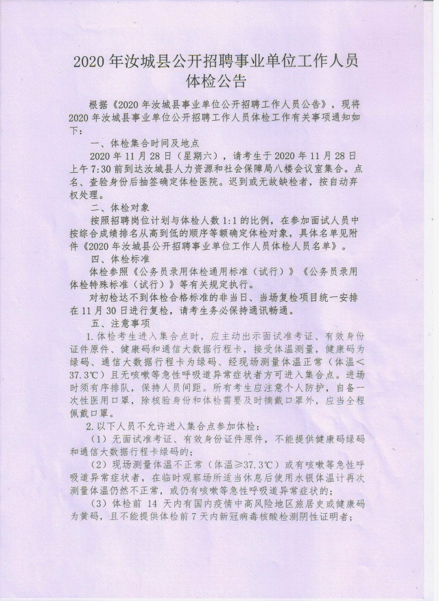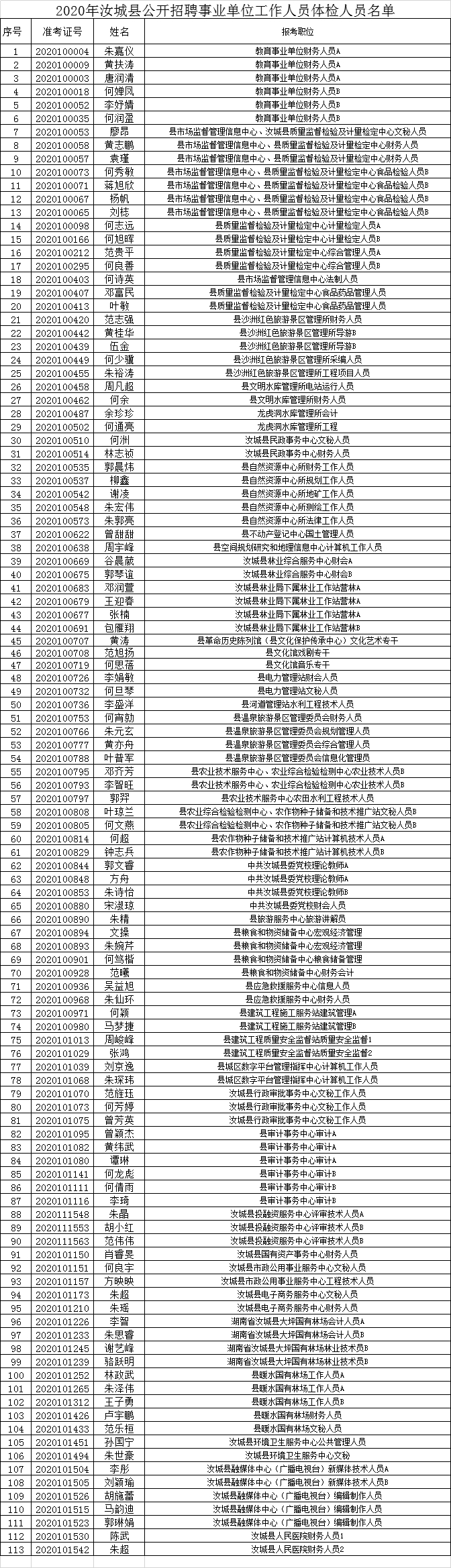 2020年汝城县公开招聘事业单位工作人员体检人员名单.xls