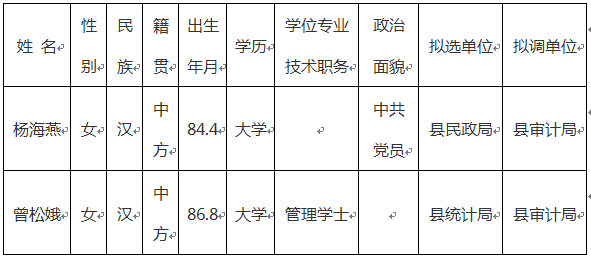 根据《中方县审计局公开选调工作人员公告》的规定,经发布信息、资格审查、职业面试、综合考察等程序和中方县审计局党组研究,现将拟选调人员名单予以公示。